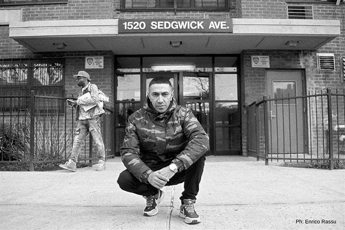 Nato e cresciuto a Roma nel quartiere di Torpignattara, figlio di un immigrato egiziano e di una donna Italiana si avvicina all’Hip Hop all’inizio degli anni novanta, prima come breaker e poi come writer nella crew capitolina The Riot Vandals.